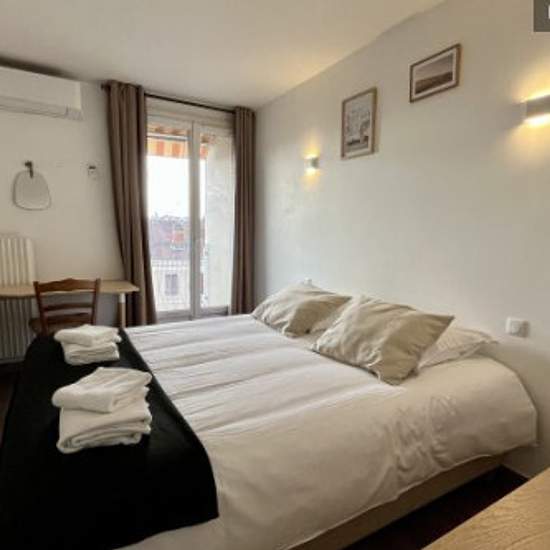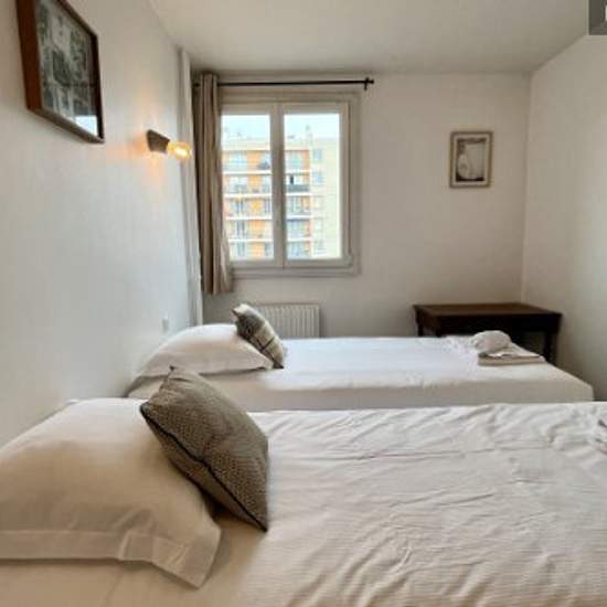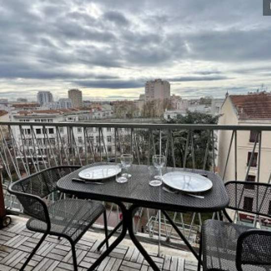 Nouveau ! Spacieux appartement situé au pied du métro Gratte-Ciel à Villeurbanne. Très bien équipé (cuisine séparée avec four, grand réfrigérateur, vaisselle, micro ondes, lave vaisselle, lave linge, TV, Internet,..), cet appartement vous plaira car il est très lumineux, bénéficie d'une vue rare, traversant, au calme, confortable et contemporain. Il est équipé de 2 chambres chacune équipée de 2 lits doubles. Balcon avec une superbe vue. Stationnement possible dans la résidence. Climatisation.