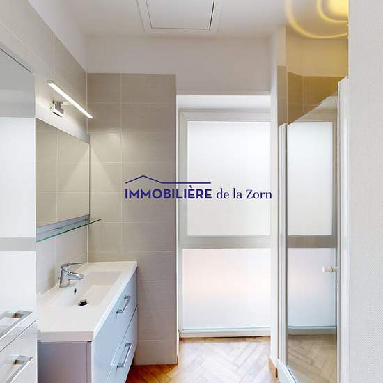 Visite virtuelle disponible A Weyersheim, proche de toutes les commodités. Dans une magnifique maison alsacienne, appartement 3 pièces de 70m² complétément réhabilité. L'appartement se compose : d'une entrée, d'un séjour ouvert sur cuisine, de deux chambres, d'une salle d'eau, d'un WC, d'une grande cave et surtout d'un jardin privatif. Une place de parking à l'extérieur. Chauffage individuel au gaz. Disponibilité très rapide. Loyer : 840€ + 65€ de charges (eau et poubelles) Dépôt de garantie : 840€ Honoraires : 700€ Honoraires de 700 € TTC à...