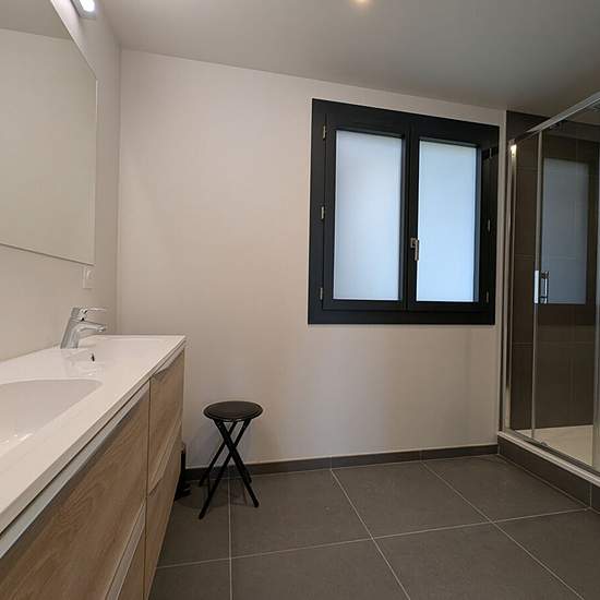 À louer Villa meublée avec vue sur le lac du Bourget Disponible en bail meublé de 3 ans, cette villa entièrement rénovée offre un cadre de vie exceptionnel sur les hauteurs d'Aix-les-Bains, dans un quartier résidentiel calme. Implantée sur un terrain plat de 1 970 m², elle séduit par sa luminosité et ses beaux espaces de vie. Composition du bien : Rez-de-chaussée : Hall d'entrée avec placard, salon-salle à manger lumineux, cuisine ouverte équipée, suite parentale avec salle d'eau, WC indépendant. Étage : Deux grandes chambres avec rangements...