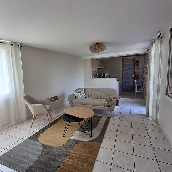 Découvrez cette maison meublée de type 3 bis Maison de ville meublée entièrement rénovée, offrant un parfait équilibre entre charme historique et confort moderne. Avec une surface habitable de 95 m², cette propriété vous invite à vivre dans un espace à la fois spacieux et intime. Cette maison de caractère, avec ses 3 pièces, se compose au rez-de-chaussée d'un bureau, d'une pièce à vivre qui donne sur une terrasse, une buanderie, une salle d'eau avec wc. A l'étage, 2 chambres confortables, une salle de bains avec wc. La cuisine ouverte, aména...
