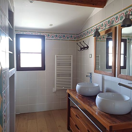 EN LOCATION Charmante maison F4 meublée de 160m2 sur 2 étages avec terrasse et grand garage + pièce d'appoint au RDC Au RDC : grand garage de 70m2 + pièce d'appoint de 34m2 (non comprise dans la superficie habitable) Au 1er étage : séjour avec poêle à bois, cuisine aménagée et équipée donnant sur une belle terrasse de 20m2, salle d'eau et WC. Au 2ème étage : 3 chambres, une salle d'eau et un WC séparé Prestations de qualité (double vitrage, pôele à bois, climatisations réversibles, adoucisseur d'eau) Commerces à proximité immédiate. Veuillez...