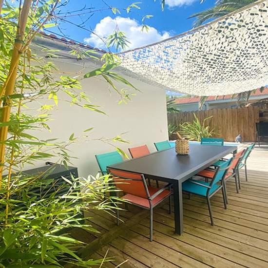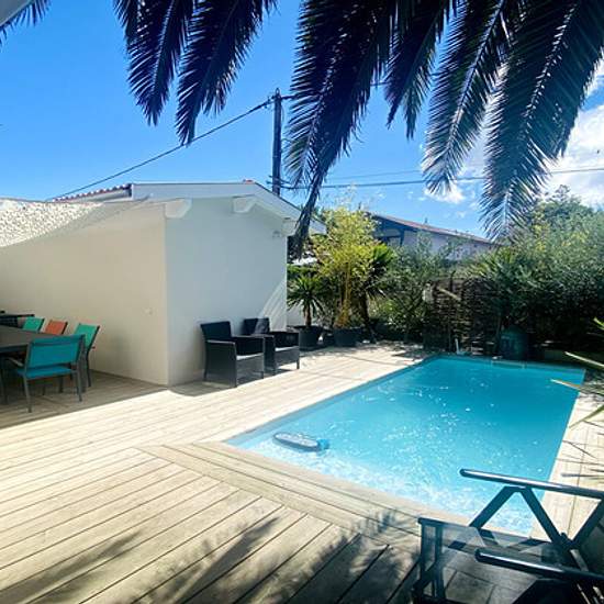 MAISON MEUBLEE 80M² ENVIRON A LOUER AU MOIS JUSQUE FIN JUIN Maison à louer à Arcachon, les pieds dans l'eau. Proximité de tous commerces et des écoles. Superficie 80m² environ. Salon hauts volumes, cuisine équipée, 8 couchages, 2 chambres dont 1 avec mezzanine + lit 2 couchages, salle d'eau, toilettes séparés. Terrasse et jardinet arborés, piscine, local vélos, parking privé. Terrain environ 300m² ! LOYER : 1850 euros HORS CHARGES Faites vite, contactez Mme Courty Nadia au !!