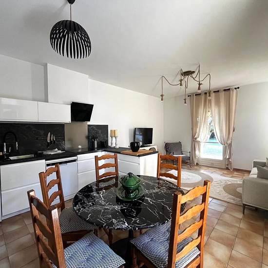 A louer, Arles, située dans un mas typique en pleine campagne, cette jolie maison mitoyenne de 66 m² offre tout le confort moderne dans un cadre paisible et verdoyant. Entièrement meublée et équipée avec goût et soin, elle se compose de :Deux chambres confortables, une cuisine moderne et fonctionnelle, un séjour lumineux et climatisé, une salle de bain soignée et wc séparé. À l’extérieur, profitez d’une grande terrasse privative avec une vue dégagée sur la nature, idéale pour vos repas en plein air ou vos moments de détente. Située à seuleme...