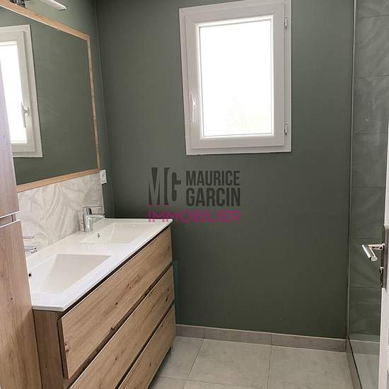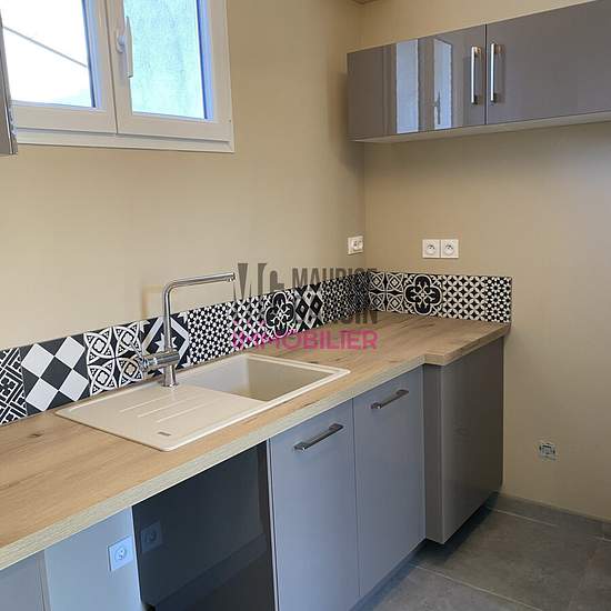 Montfavet, à proximité du centre ville, et dans quartier calme, à louer Maison de ville d'une surface habitable de 73 m² entièrement rénovée, se composant en rez-de-chaussée d'un séjour avec poêle à granules, d'une cuisine ouverte aménagée et équipée (plaque de cuisson, hotte), un wc ; à l'étage 2 chambres dont une avec placard de 13.5 m², une salle d'eau avec double vasques et cabine douche, un wc indépendant ; au deuxième étage sous les combles, une pièce aménagée de 9.5 m². Une buanderie extérieure isolée. Une cour. PAS DE GARAGE, station...