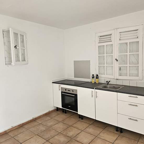 Villa F4 comportant : - 1 séjour avec volets roulants éléctriques ,3 chambres climatisées (climatiseurs neufs) dont 1 avec salle d'eau /WC et placards.1 salle d'eau,1 wc indépendant,1 grande terrasse couverte de 50m2, 1 cuisine aménagée neuve Grand jardin de 1400m2 et fermé par un portail et portillon. HONORAIRES D'AGENCE : 968 euros. LIBRE DE SUITE