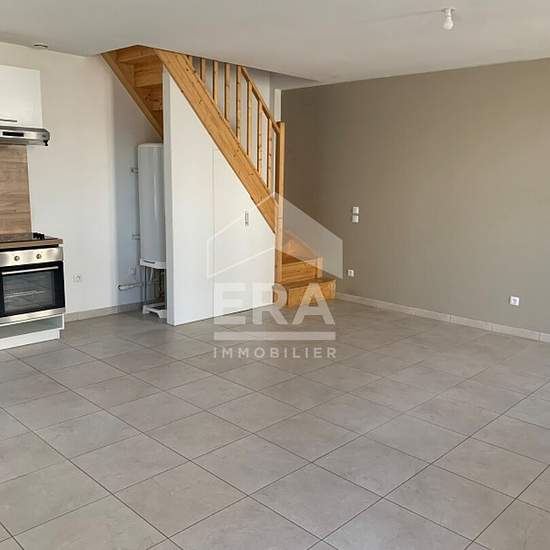 Ideale pour jeune couple Dans un cadre agréable et au calme, maison de type T 03 Duplex de 63.86 m' a 20 minutes de Bordeauw Centre comprenant au RDC: entrée donnant sur piece principale avec cuisine ouverte amenagée et équipée ( meubles hauts bas plaque hotte et palcard sous escalier), 1 cage d'escalier avec pallier, 1 salle d'eau ( Douche / vasque ) 1 wc indépendant, 2 chambres dont 1 avec placard. A l'exterieur : 1 cours terrasse de 15 m' environ close, place de stationnement sur parking commun, 1 parc commun arboré et clos Proche de tout...