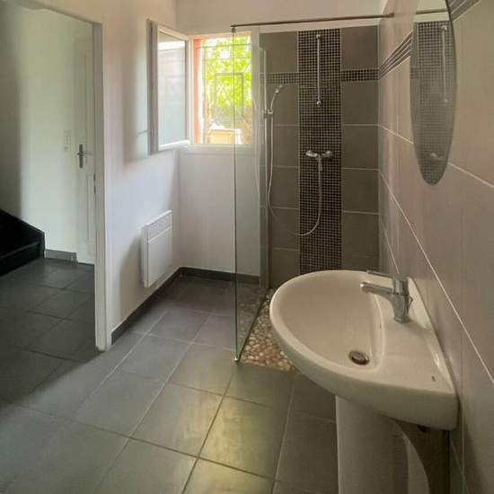 Disponible à partir de janvier, cette charmante maison T4 en R+1 d'une surface de 94 m² vous offre confort et espace. Idéale pour une famille, elle dispose également d'un jardin privatif de 300 m² et de deux places de parking (une dans le garage et une sur l'allée privative). Description : Au rez-de-chaussée : Spacieuse pièce de vie (salon + salle à manger) Cuisine américaine équipée (plaque vitrocéramique, hotte, frigo-congélateur, four) Salle d'eau avec douche à l'italienne, vasque et WC Terrasse et jardin arrière sans vis-à-vis pour profi...