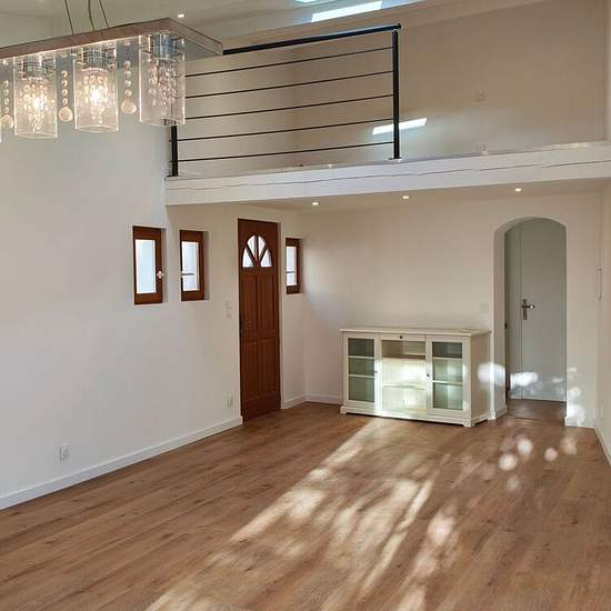 Cagnes sur Mer - Avenue de la Gaude. A 5 minutes de la ville, Avenue de la Gaude - Agréable maison loué meublé de 67m². Séjour/salle à manger de 30m² climatisé avec mezzanine, deux chambres dont une en étage, cuisine indépendante, salle de douche, buanderie et toilette. Double vitrage. Donnant sur un jardin arboré en contre bas d'environ 150m², loué avec 2 places de parking. Loyer 1500€€ + 50€ de charges