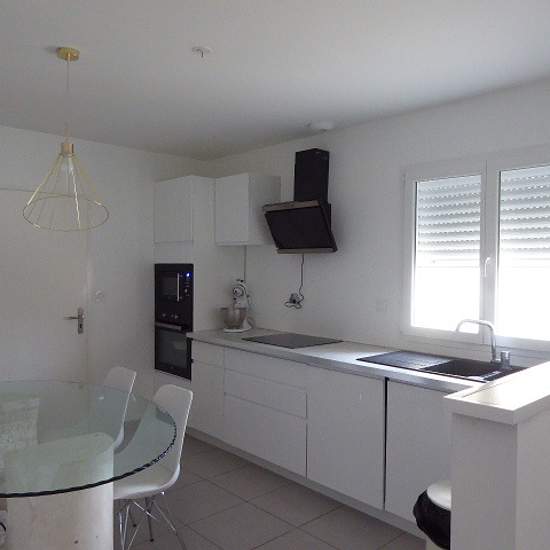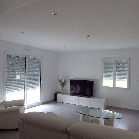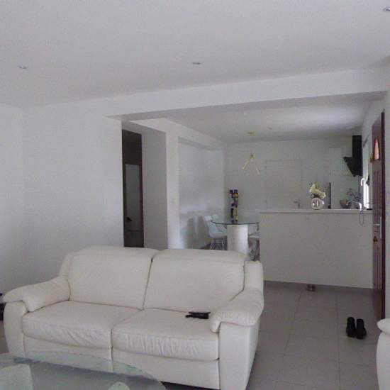 Maison de plain-pied récente comprenant; une entrée par le séjour ouvert sur la cuisine meublée et équipée (hotte, plaques, four, micro-ondes, lave-vaisselles), une lingerie, un couloir desservant une salle d'eau, wc séparés, 3 chambres dont 1 avec une douche privative. Garage attenant. Chauffage électrique par le sol Huisseries PVC double vitrage avec volets roulants Le tout sur un terrain de 516 m2