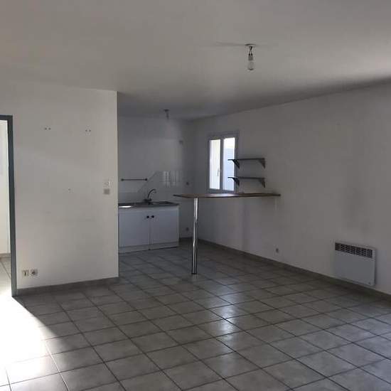 Maison offrant une pièce de vie avec coin cuisine, deux chambres, une salle d'eau, un wc séparé, un garage, une cour fermée à l'avant et à l'arrière. Chauffage électrique. Libre janvier 2026. Assurance loyer impayé.