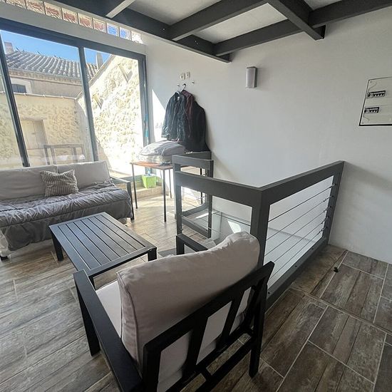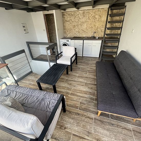 Agence Immobilière Bellissimmo Narbonne COURSAN : Maison de ville de 84 m² comprenant : En rez de chaussé une pièce de vie avec une cuisine complètement équipée et un WC Au 1er étage : Une Chambre lumineuse, une salle d'eau et un WC Au 2nd étage : une kitchenette, une petite pièce de vie avec une chambre en mezzanine. Vous disposez d'une terrasse tropézienne tout en pierre.