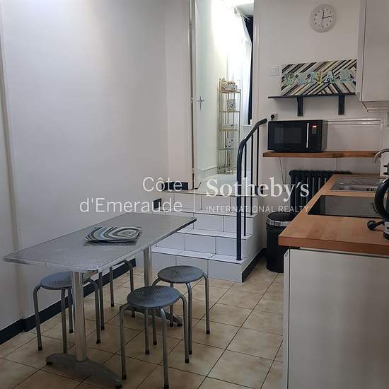 En exclusivité. Maison meublée à louer à l'année (70.97 m²) dans le centre ville de Dinard avec vue mer comprenant un lumineux salon/séjour, une cuisine aménagée et équipée, une spacieuse chambre avec placards, un dégagement, une salle d'eau avec un WC séparé. Au 1er étage, deux chambres en enfilade. Cave en sous-sol.