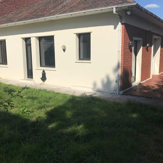 Maison de plain-pied DOUAI. MAISON de plain-pied comprenant une entrée, grand séjour, cuisine équipée avec coin repas, salle de bains, W.C, 2 chambres, cave aménagée avec douche, garage, jardin, petite dépendance, chauffage central au gaz. Disponible de suite Surface habitable : 104m2 Loyer : 1000€ par mois Dépôt de garantie : 1000€ Honoraires charge locataire : 837€ Honoraires état des lieux charge locataire : 314€ Les informations sur les risques auxquels ce bien est exposé, sont disponibles sur le site Géorisques :
