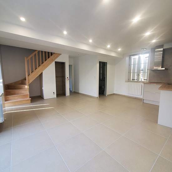 Charmante maison de village en pierres apparentes entièrement rénovée, offrant 81 m² habitables et située dans un environnement calme. Au rez-de-chaussée, l'entrée dessert une pièce de vie lumineuse avec cuisine aménagée et équipée avec cellier, wc avec lave mains, une chambre parentale avec salle de douche privative. À l'étage, un palier pouvant faire office d'espace bureau distribue deux chambres supplémentaires ainsi qu'une salle de douches avec wc. La maison dispose d'un jardin clos à usage privatif. Chauffage électrique, très bon DPE. L...