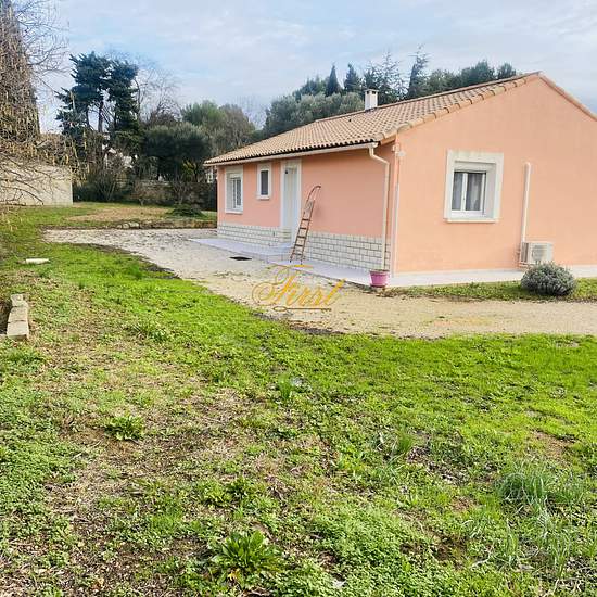SAINT CHRISTOL sur la commune d'ENTRE-VIGNES, villa entièrement meublée, T3 de plain pied dotée d'une grande terrasse. Cette villa très bien entretenue se compose d'une belle pièce à vivre avec cuisine américaine entièrement équipée, 2 chambres, salle de douche, wc. Vous disposez d'un jardin de 896 m2, d'un garage de +de 28m2, de belles prestations telles que double vitrage, volets roulants, climatisation. ATTENTION : pour toutes visites nous vous demandons de nous envoyer un dossier complet ( contrat de travail, 3 derniers bulletins de sala...