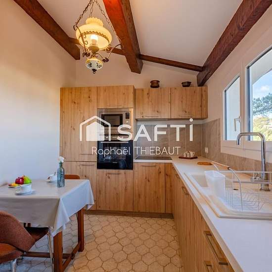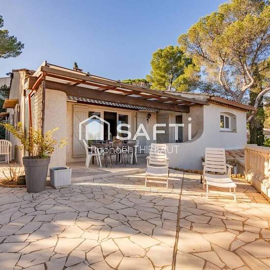 À seulement quelques minutes des plages et des calanques, cette villa de 96 m² offre un cadre de vie paisible et verdoyant. Située dans un quartier résidentiel, elle allie confort moderne, élégance et charme méditerranéen. Au niveau 0, un vaste garage avec réserves idéal pour les véhicules et le stockage. Au niveau 1, un grand séjour salon / salle à manger lumineux donnant sur une terrasse vue mer, une cuisine séparée équipée, 2 chambres avec rangements et salles d'eau, un wc séparé. Edifiée sur un terrain total de 800 m², cette villa est id...