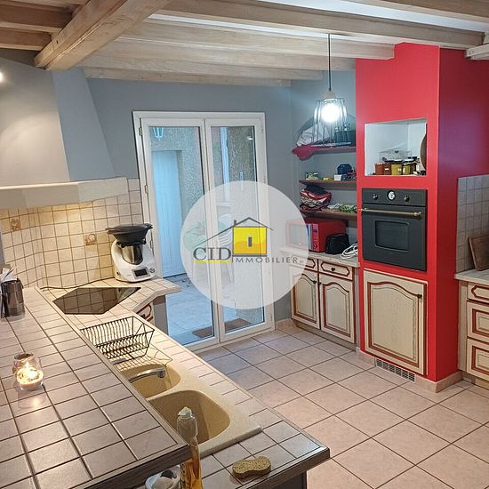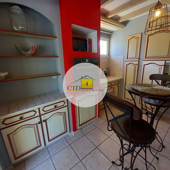 Charmante maison meublée de 112 m² (99 m² habitables), secteur calme de Frontonas avec cour privative et dépendances, comprenant : Au RDC : Une belle pièce principale de 35 m², avec coin cuisine meublé et équipé (four/frigo/plaque de cuisson), une suite parentale (13.92 m²) avec salle de bains (baignoire et douche), un WC. A l'étage : une mezzanine, deux belles chambres avec placard (10.15 m² + 10.14 m²), une salle d'eau avec WC. A l'extérieur : une grande terrasse exposée Ouest avec store banne et une partie couverte, une cour pour stationn...