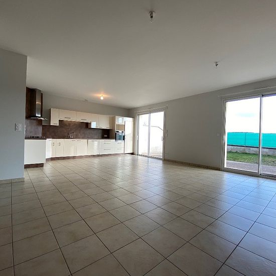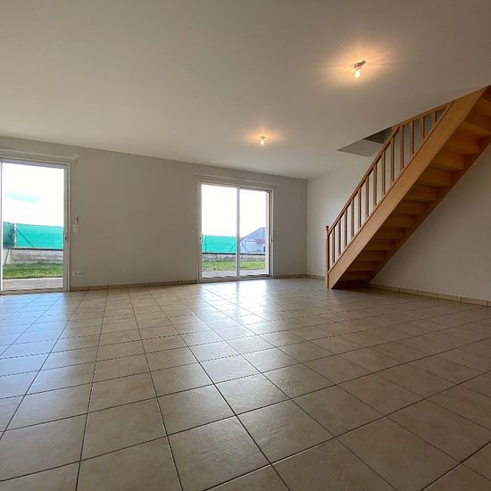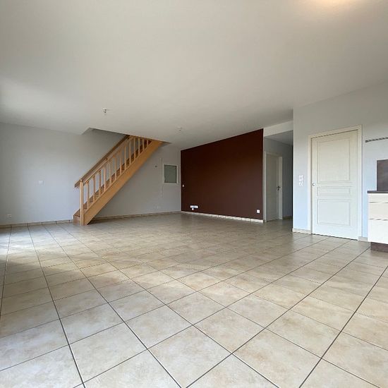 REF 5180 GENNES, PAVILLON Mitoyen, Classé BBC T5 mitoyen en Duplex, 122 m², 3 chambres, 2 SDB, séjour avec cuisine ouverte équipée (plaques, frigo, hotte, four et lave-vaisselle laissé à titre gracieux), terrasse + terrain clos d'environ 300 m², cellier, buanderie, Chauffage ind/sol géothermie, garage avec espace de rangement par escaliers escamotables au dessus de celui-ci, 1 parking réservé, LIBRE