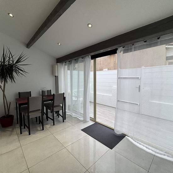 Fütterer Property vous propose à la location longue durée à Gruissan Ayguades : Pavillon T3 avec terrasse, climatisation et parking privatif. Ce pavillon rénové en 2025 se compose comme suit : Une terrasse, un espace salle à manger, un salon et un coin cuisine (non équipée) donnant sur une seconde terrasse. En suivant, la salle d'eau se compose d'une spacieuse douche, et sur le même palier vous trouverez une chambre. Pour finir, à l'étage une seconde chambre. Logement en location non meublé. Disponible immédiatement. Loyer : 760€ / mois + 35...