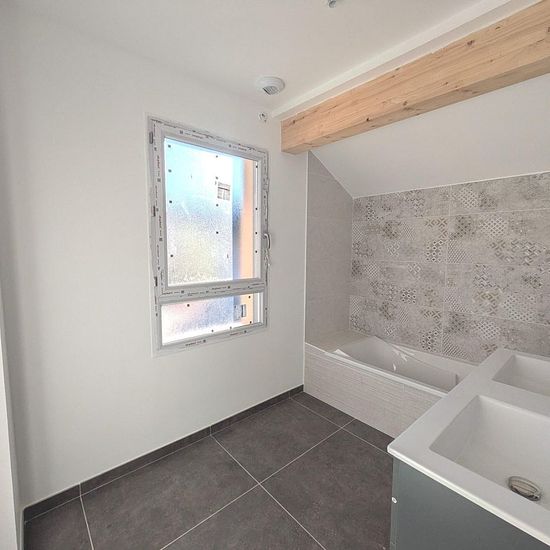 EXCLUSIVITE - Maison Neuve de 93.71 m² au 40 chemin du Platre 38320 HERBEYS SUITE A DE TROP NOMBREUX RENDEZ-VOUS NON HONORES, LES VISITES S'EFFECTUENT DESORMAIS UNIQUEMENT APRES RECEPTION DU DOSSIER COMPLET Située dans un environnement résidentiel recherché, au calme absolu et bénéficiant d'une belle vue dégagée à moins de 30 minutes de Grenoble, et à 10 minutes d'Eybens. Cette maison est édifiée sur un terrain partagé accueillant également d'autres habitations. Le jardin est collectif. Elle se compose d'une entrée ouvrant sur un spacieux sé...
