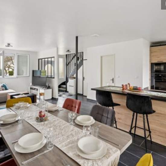 Maison de 140 m² à Herblay-sur-Seine, idéale pour familles, amis ou professionnels. Elle offre 3 chambres, une cuisine équipée avec lave-vaisselle, la literie fournie, Netflix, Amazon Prime Video, un parking privé un détecteur de monoxyde de carbone et une alarme My Verisure. À proximité immédiate : commerces, marché local, restaurants variés, cafés, bords de Seine... un emplacement pratique, bien desservi, parfait pour un séjour confortable et serein. Un personnel disponible H24.