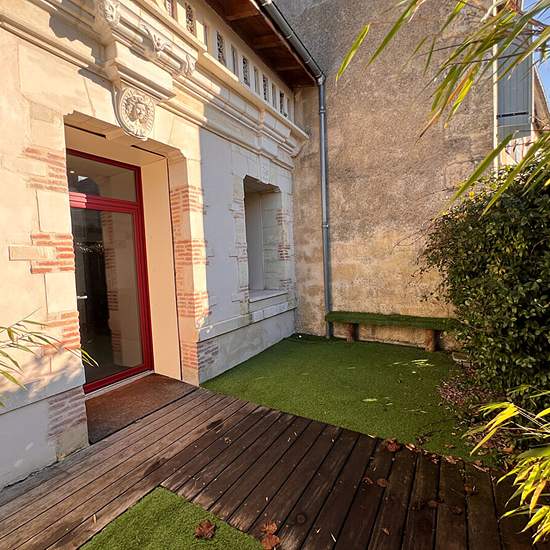 A LOUER sur la commune de Hostens disponible à partir de mi février, charmante maison de ville aux prestations soignées de 124m² composée en rez de chaussée, d'un séjour, cuisine, un cellier, un salon avec coin bureau, un wc. A l'étage, un wc, 2 grandes chambres de 14m², une salle de bain avec douche, une suite parentale de 22m² avec dressing et salle d'eau. A l'extérieur un patio et une petite cour. Loyer 1050Euro/mois + entretien gainable à prévoir en provision pour charges. Dépôt de garantie 1050Euro. Honoraires d'agences: 1374.34Euro. Co...
