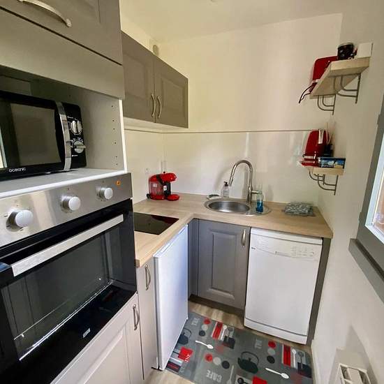 Maison en location de vacances pour 6 personnes, d'environ 40 m2, comprenant au rez de chaussée, une entrée sur une pièce à vivre avec canapé lit (140), une cuisine aménagée et équipée, w-c, à l'étage, deux chambres (une avec 1 lit double 140 et une avec deux lits simples 100) et une salle de douche. L'ensemble sur un beau jardin clos d'environ 300 m2 et une place de parking. A réserver ...