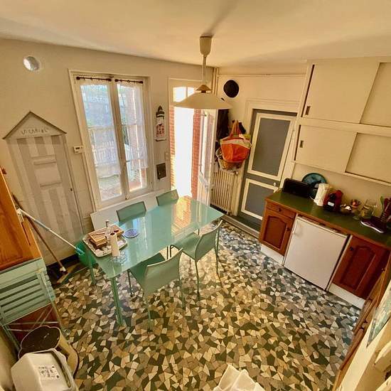 Maison de vacances Houlgataise à deux pas de la plage et des commerces, d'environ 70 m2, comprenant en rez de chaussée une cuisine aménagée et équipée et une pièce de vie avec canapé convertible, wc en demi palier et à l'étage 2 chambres et une salle de bain. une cour privée, une place de parking, Faire vite ...