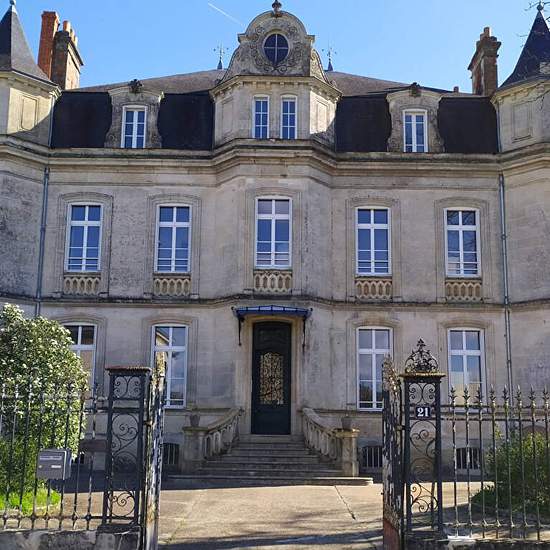 Jonzac centre ville, au coeur d'un écrin de verdure, à proximité des écoles, du collège, du stade et de l'hôpital, maison composée au rdc d'une entrée, d'un séjour, d'une cuisine indépendante aménagée, d'une salle de bains et wc séparés. A l'étage : un palier, 2 chambres dont une avec une grande terrasse privative avec vue imprenable sur le Château. Site sécurisé. Libre mi-février 2026 Une place de parking privative. Parc, verger, local vélos à disposition des locataires. La provision de charges comprend : l'entretien des parties communes et...
