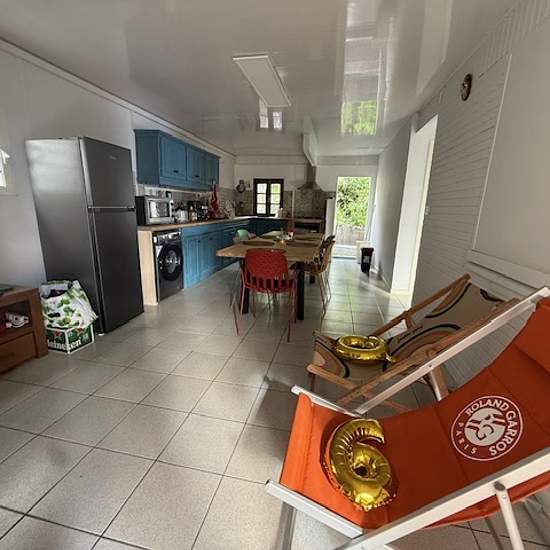 À louer proche centre ville des Avirons, maison meublée de 87 m² en location annuelle, offrant confort et fonctionnalité dans un environnement agréable. La maison se compose de : 3 chambres, dont une climatisée salon Grande cuisine de 28 m², spacieuse et conviviale, idéale pour les repas en famille Salle d’eau WC indépendant Belle varangue sur vue mer Pièces lumineuses et bien agencées À l’extérieur, vous profiterez d’un beau jardin ombragé, parfait pour les moments de détente ou les repas en plein air. Chauffe-eau solaire (économique et éco...