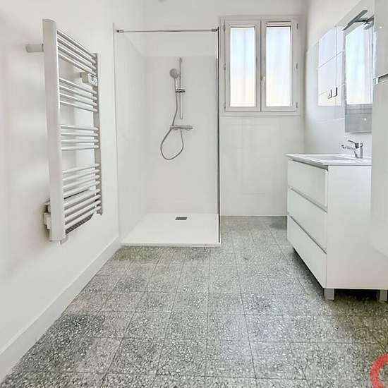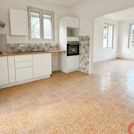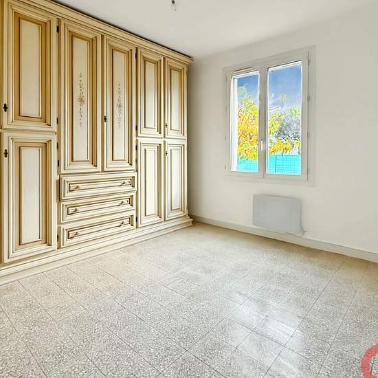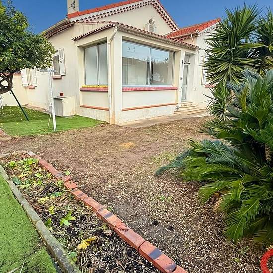 Maison La Seyne Sur Mer 3 pièce(s) 75 m2. A LOUER QUARTIER PEYRON (derrière hôpital) : Maison individuelle de type 3 d'une superficie de 75 m² sur un terrain de 750 m² comprenant: Salon, cuisine aménagée et équipée (four, plaque et hotte), deux chambres, salle d'eau, vestibule et WC, cellier. Véranda et Grand Garage. Climatisations dans salon et chambres Disponible de suite.