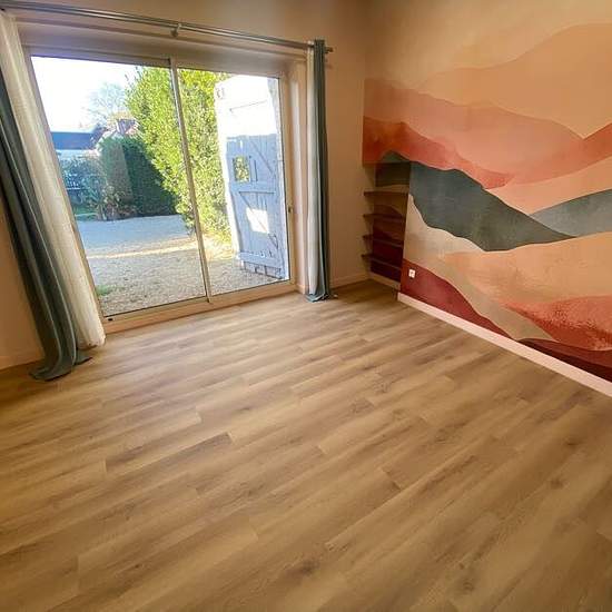 Charmante maison ancienne entièrement rénovée, offrant deux niveaux de vie. Elle se compose au rez-de-chaussée d'une entrée donnant sur une cuisine aménagée, d'un dégagement, d'un WC avec lave-mains, d'un séjour-salon lumineux ainsi que d'une pièce pouvant servir de chambre ou de bureau, disposant d'une cave en dessous et d'un accès direct à la cour. À l'étage, une grande mezzanine offre de multiples possibilités d'aménagement, accompagnée d'une salle d'eau équipée avec WC (sanibroyeur). La propriété bénéficie également d'une agréable cour p...