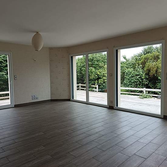LOCATION - MAISON - NOUVEAUTE - LANDEDA - Au calme située entre le port de l'Aber Wrac'h jolie et le bourg de Landéda - Beau terrain arboré de 2000 m². Belle pièce à vivre de 37 m², donnant sur une terrasse en bois, cuisine aménagée et équipée NEUVE , deux chambres au rez de chaussé avec salle d'eau et wc. Garage et cellier . Suite parentale avec salle de bains à l'étage . Libre mi novembre. A noter que l'entretien du jardin est compris dans le loyer. Disponible début mars.
