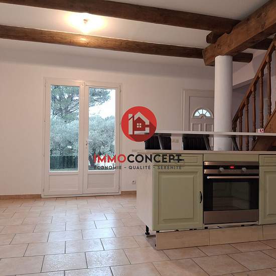 Au fond d'une impasse,villa avec jardin composée d'une piece à vivre ouverte ( salon ,salle à manger et cuisine équipée comprenant four, plaque, hotte et lave- vaisselle ) de 34.84m², une salle de bain avec douche et baignoire , un cellier et un WC séparé. A l'étage , deux pièces sous toiture d'environ 10 et 19 m². Chauffage électrique et climatisation. Dossier exigé (CDI ou contrat équivalent / revenus nets mensuels de 2430€ minimum). Loyer de base 750 €/mois. Provision sur charges 10 €/mois, régularisation annuelle. Dépôt de garantie 750 €...