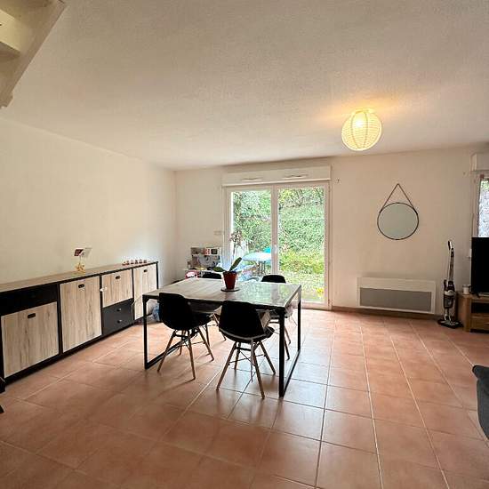 A dix minutes de Carcassonne, maison T3 située dans une petite résidence implantée au sein d'un village disposant de commerces et services de proximité. Le rez-de-chaussée se compose d'une entrée menant au séjour, d'une cuisine indépendante et d'un accès intérieur reliant directement le garage. L'étage concentre la partie nuit avec deux chambres dotées de rangements intégrés, une salle de bains et un WC séparé accessibles via un couloir distribuant les pièces. La surface totale d'environ soixante et onze mètres carrés propose une configurati...