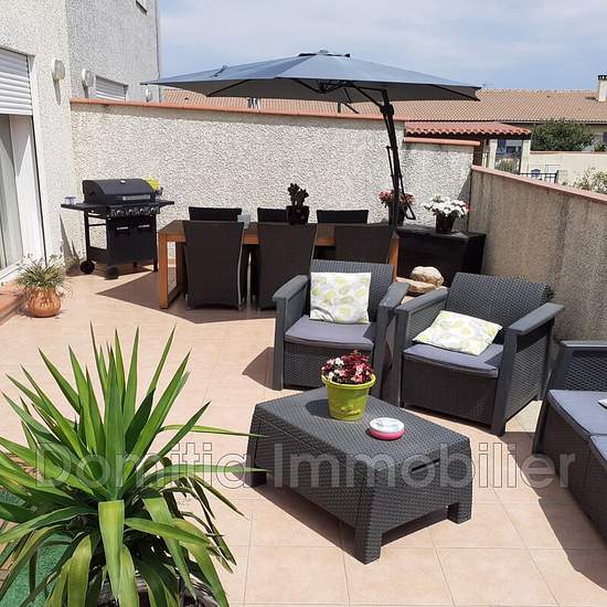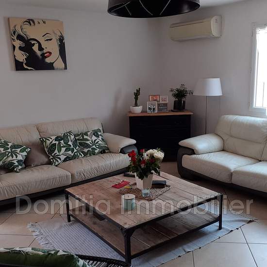 le Boulou dans un quartier résidentiel et calme, belle villa .Surface habitable 82,77 m²- Terrain 3 faces- terrasse et jardin -2 places de parking devant la maison . Rez de chaussée entrée, salon 32,55 m²- cuisine ouverte équipée 9,17 m²-garage 15,27 m²- Etage 3 chambres respectivement 9,45 m²-- 9,35 m²- 9,50 m²- salle d'eau 4,55 m² ensemble en bon état- libre le 15 octobre .très ensoleillé .