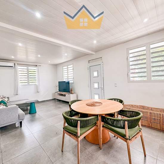 Posez vos valises dans cette somptueuse maison de plain-pied, entièrement rénovée à neuf, meublée, équipée et décorée avec goût. Située dans un secteur prisé du François, à proximité immédiate du centre commercial principal et de toutes les commodités, cette propriété allie confort, élégance et fonctionnalité. Des prestations haut de gamme : Grand séjour lumineux, Cuisine séparée, entièrement équipée 2 spacieuses chambres avec literie de qualité et grands dressings Salle d’eau moderne avec douche à l’italienne WC indépendant Un cadre de vie ...