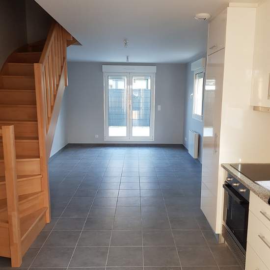A louer dans le secteur Sanvic - Mont Gaillard , proche de tous commerces et de toutes commodités (bus et tramway), découvrez cette maison de 3 pièces de 57.82 m² qui se compose : Au rez-de-chaussée : D'une cuisine aménagée et équipée ouverte sur le séjour donnant sur une terrasse, un WC, une buanderie. Au 1er étage : Deux chambres, une salle d'eau, un WC La production de chauffage et d'eau chaude est individuelle et alimentée à l'électricité. Ce bien sera disponible le 15/12/2025. A bientôt ! Référence annonce : 156