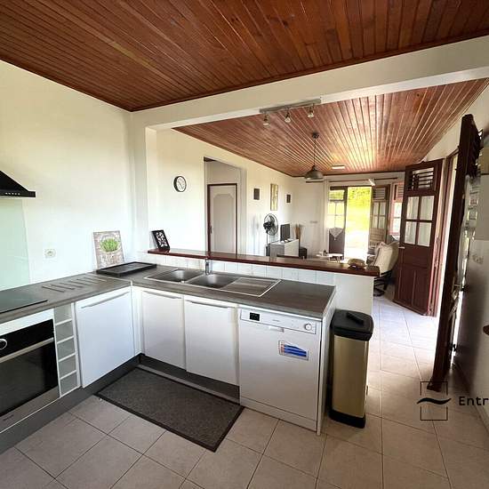 À LOUER ! Venez découvrir cette maison située au Vauclin, dans un secteur calme avec vue mer. Vous serez accueillis dans un séjour meublé d’un canapé, d’une table à manger et d’une télévision ouvert sur une cuisine, aménagée et équipée. Le bien dispose de deux chambres climatisées et aménagées de lits et de rangements. La salle d’eau comprend une douche, une vasque et un wc. Vous finirez votre visite sur une grande terrasse offrant une vue mer et un jardin privatif. Une place de stationnement couverte complète le bien. Loyer : 1200 euros (en...
