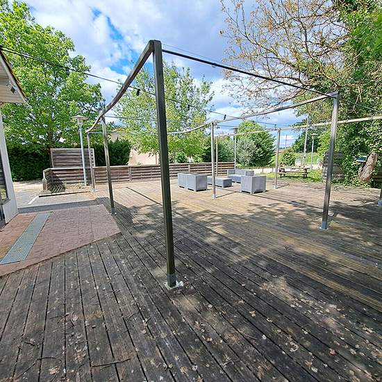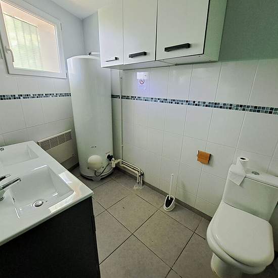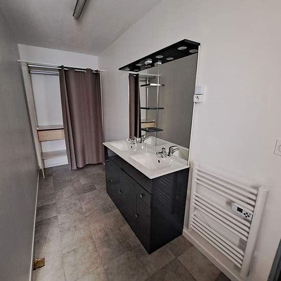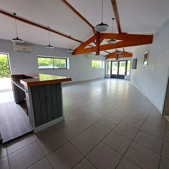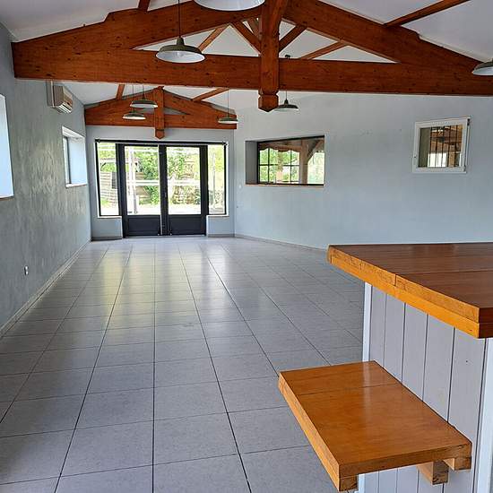 Libre de suite. Maison de plain pied à louer face à la voie verte au Ledat. Elle comprend une spacieuse pièce de vie de 65m2 avec cuisine ouverte meublée meublée et équipée (hotte, four, plaque induction), deux chambres dont une avec coin dressing et un WC et une salle d'eau avec douche et wc. Une grande pergola d'environ 50m2 et grande terrasse sur l'avant avec barbecue. A l'arrière un abri de jardin et petit jardinet d'environ 50m2 non clôturé. Dans les charges : provision pour entretien clim, taxe ordures ménagères et vidage de la fosse s...