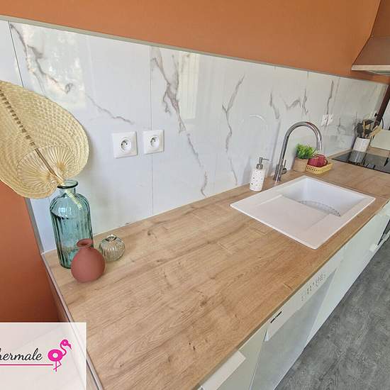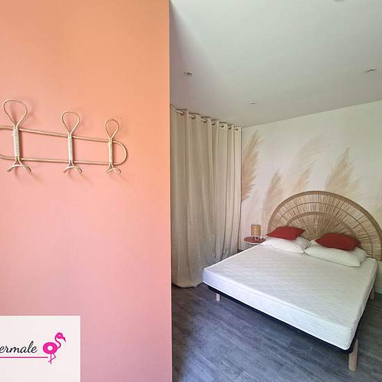 La Thermale *** A 300 m à pied des thermes, découvrez cette maisonnette de 40 m². Maisonnette entièrement rénovée de 40 m². Elle comprend une belle pièce de vie avec salon et cuisine ouverte, une chambre indépendante avec sa salle d'eau et un espace buanderie, et des toilettes séparée. Décorée avec goût, vous vous accorderez une pause détente pendant votre séjour. Draps et serviettes compris Elle dispose également d''une place de parking privative Tarif spécial curiste : 750 euros / 3 semaines Tarif à la semaine 350 euros Si besoin : Forfait...