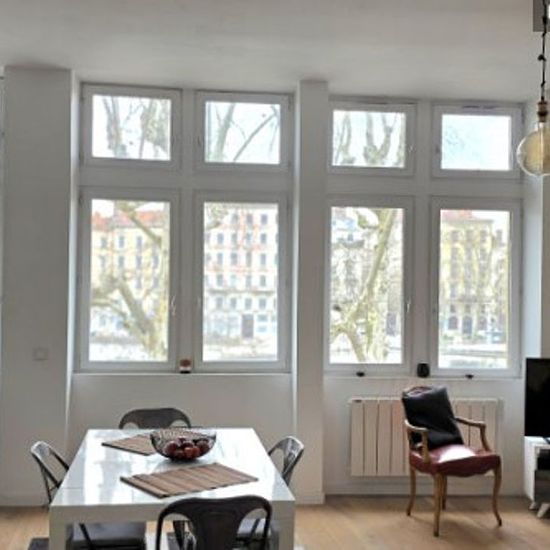 LOYER TOUTES CHARGES COMPRISES : eau, électricité, Internet, gaz, draps et linge de maison. Splendide duplex de 80 m² avec 2 chambres, 2 salles d'eau et une très jolie vue sur la Saône. Place de parking couvert en option (150 € /mois) Dans l'un des quartiers les plus prisés et résidentiels du centre-ville de Lyon Esprit de "petite maison" tout en étant situé dans un immeuble de caractère typique du Vieux Lyon Découvrez les équipements et la distribution des pièces. Couloir d'entrée avec porte-manteau et rangement à chaussures Vaste et lumine...