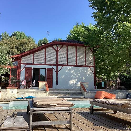 Charmante maison ancienne de campagne située à Magescq, au calme sur un vaste terrain arboré de 3 hectares avec piscine. La maison se compose de : -3 chambres spacieuses -1 salle d’eau -1 salle de bains -2 toilettes -Cuisine aménagée et équipée -Salon avec cheminée -Chauffage électrique Environnement paisible, idéal pour un séjour au vert dans les Landes. Surface habitable : (à préciser si souhaité) Piscine entretenue par un professionnel (1 à 2 passages par mois inclus) Jardin suivi par un jardinier (1 passage par mois inclus) Diagnostics :...