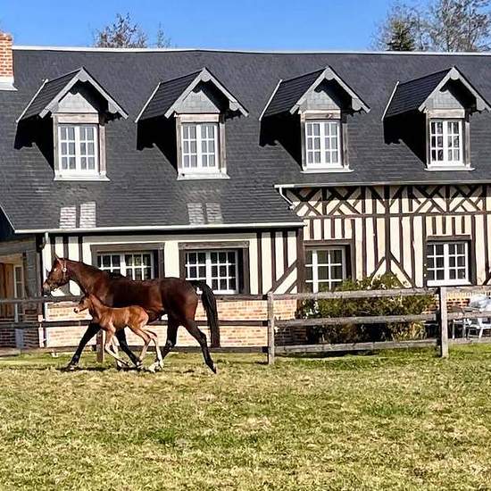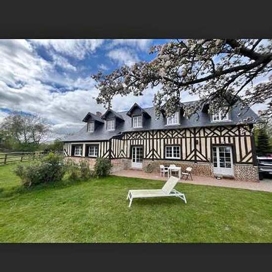 Trois pièces meublées au RDC d’une maison en colombage au sein d’un haras entre Manerbe et le Pré d’Auge 2 chambres, salle de douche WC, salon, cuisine ouverte, jardin