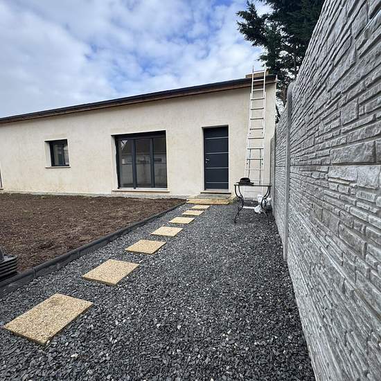 Maison Individuelle Plain-Pied avec Jardin - 66.10 m² 2 chambres Ravissante maison individuelle récente de plain-pied comprenant une entrée avec placard, une cuisine aménagée ouverte sur le séjour, deux chambres avec velux, une salle de bains avec douche baignoire et wc. Les ouvrant sont en aluminium avec baie vitrée dans la salle à manger sur le jardin de 212m2. Tout le logement est électrique. Disponible le Loyer : 1 350 Euros par mois HC Dépot de garantie 1 350 Euros Honoraires charges locataire 727,10 Euros TTC dont état des lieux inclus...