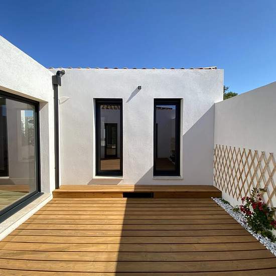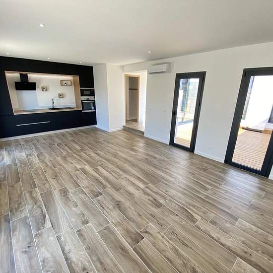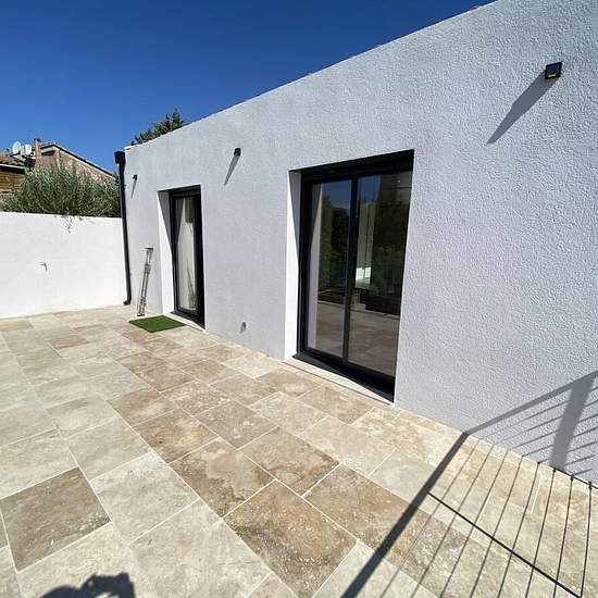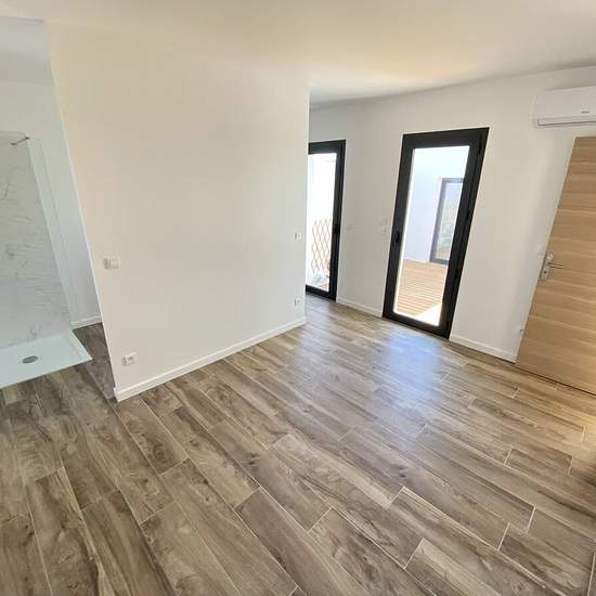 Maison neuve de type 3 totalisant 102 m2 avec un patio, une terrasse et un jardin. Elle se compose au Rez de chaussée d'une entrée avec visiophone, un dégagement avec un grand placard, un grand séjour avec coin cuisine entièrement équipée et aménagée donnant sur une terrasse de 22 m2 exposition Sud, une salle d'eau avec WC, une suite parentale avec douche à l'italienne et un patio de 20m2. En souplex, un grand bureau/buanderie et une grande chambre. Portail électrique. Plusieurs emplacements de stationnement privée dans le jardin dont une co...