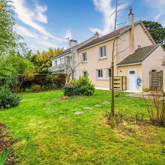 Nantes - Toutes Aides : idéalement située, à deux pas des écoles, des commerces et des transports, au calme absolu, maison des années 70 fonctionnelle, offrant de beaux volumes. Ce bien de qualité bénéficiant d'un beau jardin exposé est, d'un vaste garage traversant et de deux dépendances se compose d'une entrée avec placard, réception traversante avec cheminée, cuisine aménagée, 3 chambres avec placards, salle de bains et WC. GLI en place. Les provisions pour charges mensuelles comprennent : entretien de la pompe à chaleur, ramonage cheminé...