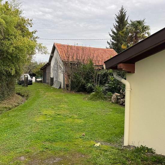 Maison F3 Orx. À louer à l'année, maison de 65 m² meublée. Elle se compose d'une pièce de vie avec cuisine ouverte et d'une agréable véranda. L'espace nuit comprend deux chambres avec placards : une équipée d'un lit double neuf (160 cm) et l'autre de deux lits simples neufs (90 cm). La salle de bain est équipée d'une baignoire avec porte pour un accès facilité. Des combles aménagés offrent un espace de stockage pratique. Profitez d'un jardin de 180 m² exposé Sud et sans vis-à-vis. Un garage fermé est inclus. Le confort est assuré par un p...