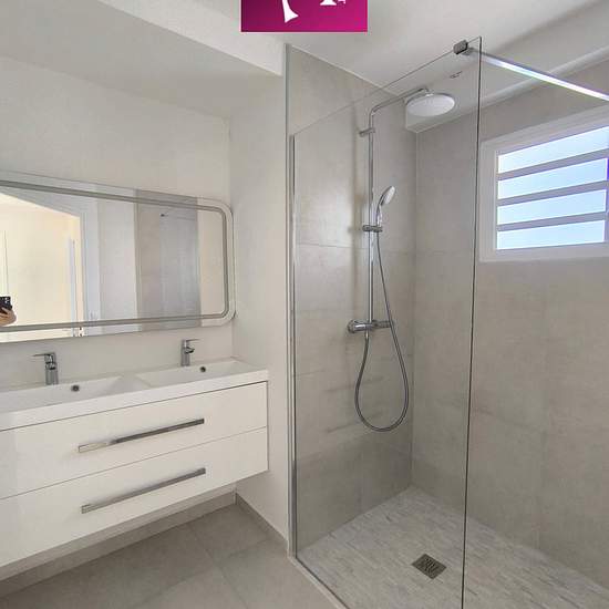 Découvrez cette superbe villa neuve située dans un environnement calme et résidentiel de Vernou, PETIT-BOURG. Elle allie confort moderne, luminosité et prestations de qualité. La maison se compose d'un séjour lumineux avec de grandes baies vitrées ouvrant sur la terrasse, ainsi que d'une cuisine semi-équipée avec meubles de rangement. Un cellier attenant vient compléter cet espace pratique et convivial. La villa dispose de trois chambres climatisées, réparties entre le rez-de-chaussé et l'étage, dont les plus spacieuses sont équipées de plac...