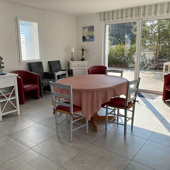 LOCATION VACANCES et TARIF A LA SEMAINE - Profitez en famille de cette spacieuse maison de 120 m2, à 4 min à pied des plages. Composée d'une grande pièce à vivre avec cuisine aménagée et équipée donnant sur une véranda lumineuse, un patio et une terrasse close. Vous trouverez à l'étage, une chambre n° 2 avec un lit double (2x0,80) ainsi qu'un grand espace couchage style dortoir avec 4 lits (0,90) et un bz pour deux personnes. 2 salles d'eau viennent compléter ce bien.